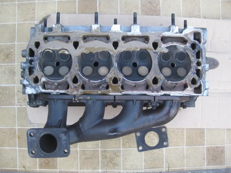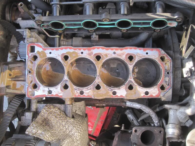 I got the Cylinder Head off ~ bit of a struggle with severely corroded Exhaust Manifold Studs and Nuts. A completely corrosion seized Ex-Manifold Flange to Turbocharger 13mm Flanged Nut had been completely rounded in previous ownership. Needed an angle grinder to break it up. Here is what was revealed :~
